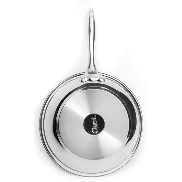 Featuring 3-Ply stainless-steel construction and a triple-riveted stainless-steel handle that stays cool to the touch, the Stainless Steel Earth Pan by Ozeri achieves a restaurant-quality experience without sacrificing durability. Designed to withstand the most demanding cooking tasks with low maintenance, the stainless-steel cooking surface always maintains its color and luster, even when cooking foods that are highly alkaline or acidic. The Stainless Steel Earth Pan by Ozeri is crafted from the highest quality stainless-steel for enduring performance, efficient heat conductivity, and a cooking experience that is entirely free from hot spots. Made for the experienced chefs who prefer to hand season the surface of their pans before cooking, the restaurant edition of the Stainless Steel Earth Pan is PTFE and PFOA-free and compatible with all cooktops, allowing you to sauté, fry, sear, brown, boil or braise without concern over altered flavors. Sporting a polished mirror exterior that resists both scratches and dents, the pan also boasts a magnetized bottom for rapid heat transfer on induction stoves. Additional features include sloped walls for easier tossing and flipping, and a beveled rim for cleaner pouring. Made to withstand the test of time, the Stainless Steel Earth Pan is oven and broiler-safe up to 500° F (260° C), 100% dishwasher-safe, and offers a professional-level cooking experience that maximizes flavor. Your satisfaction is guaranteed.