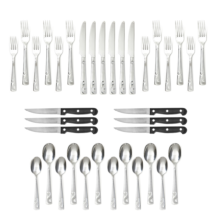 - Dishwasher-safe flatware set is made from 18/0 stainless steel
