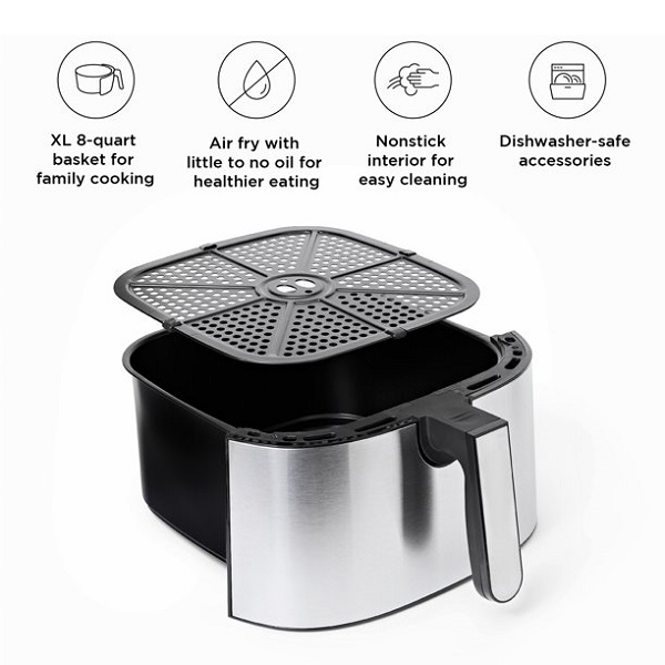 Chefman TurboFry Stainless Steel Air Fryer, Dishwasher-Safe Basket, 8 Quart