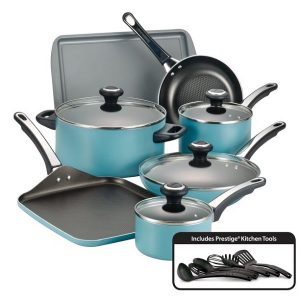 Farberware High Performance Nonstick Aluminum Cookware Set, 17-Piece, Aqua
