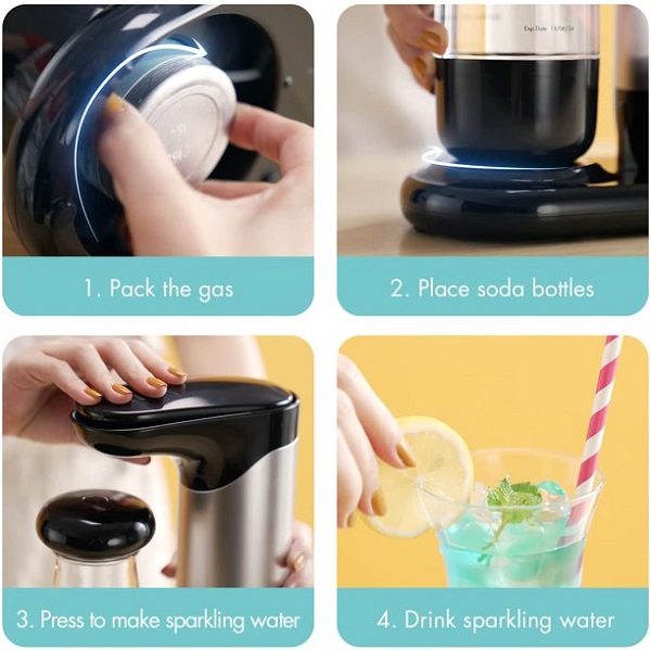 - 【Easy and User Friendly 】Soda maker Easy to operate – no electricity or batteries required,make fresh sparkling water at the push of a button, elevates all your favorite drinks to the next level with freshness: You can carbonate any drink if you want.
