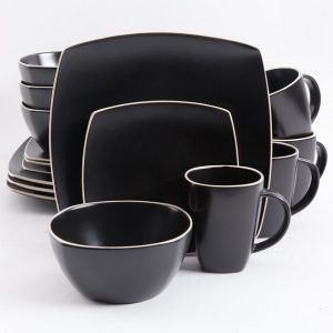 Specifications Gibson Home Soho Lounge Square 16 Pc. Dinnerware Set, Matte Black
