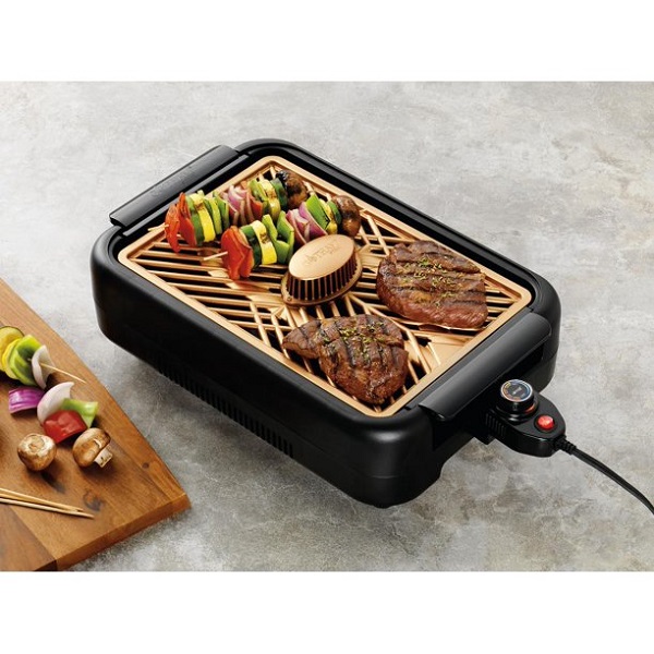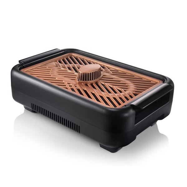 The Gotham Steel Electric Smokeless Grill with fan lets you enjoy your favorite grilled meals indoors. Boasting a titanium and ceramic nonstick surface, this useful grill features even heat distribution for superior cooking results. The Gotham Steel Smokeless Grill with Fan has 150 sq. in. Black Copper Non-Stick Ti-Ceramic Electric Smoke-less Indoor Grill with Smoke Extraction Fan. As Seen On TV’s Smokeless Grill is the smart, new way to grill and barbeque indoors without all the smoke of outdoor or traditional grilling methods. Quality, creativity, and innovation are the co
