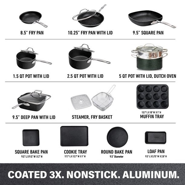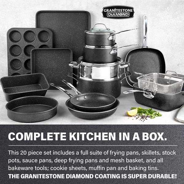 Product details Granitestone Pots and Pans Set, 20 Piece Complete Cookware + Bakeware Set G15T