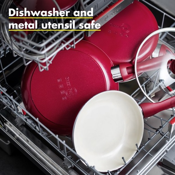 - Tough, diamond-reinforced nonstick coating is incredibly durable