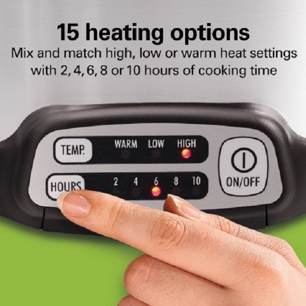 - 15 HEATING OPTIONS. Mix and match high, low or warm heat settings with your choice of 2, 4, 6, 8 or 10 hours of cooking time.