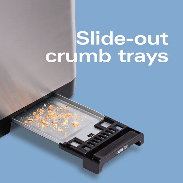 - CRUMB TRAY: The 4 slice toaster features two convenient crumb trays that easily slide out, making cleanup simple.