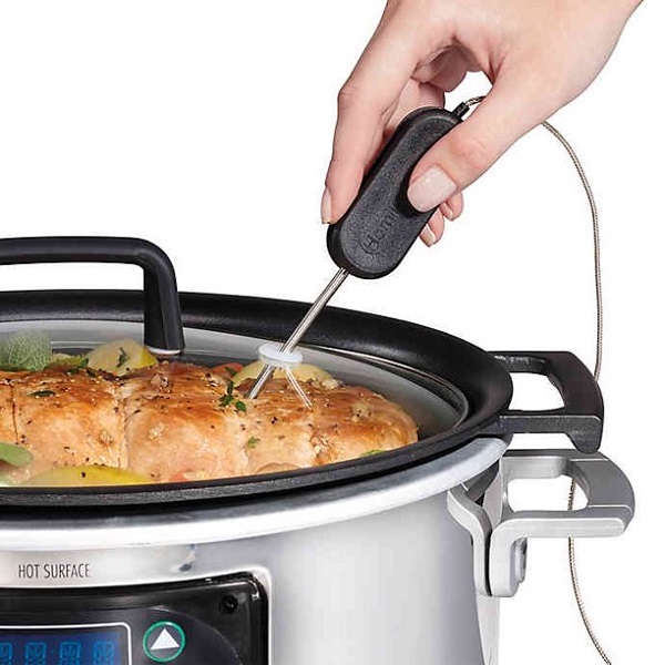 - Meat thermometer probe function lets you set a desired meat internal temperature and unit will automatically shift to keep warm when temperature is reached