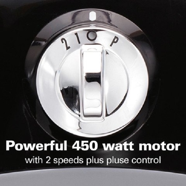 - 2 SPEEDS PLUS PULSE AND 450 WATTS OF POWER: Food processor features low and high speeds plus pulse for the control you need for a variety of recipes.