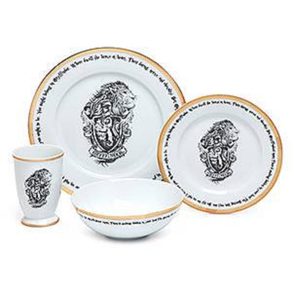 - Magical Mealtime: Entertain your guests with this gorgeous 16-piece Harry Potter Dinnerware Set. Featuring themed designs inspired by the Wizarding World, the fine detailing and gold edging make this a must-have dish set.