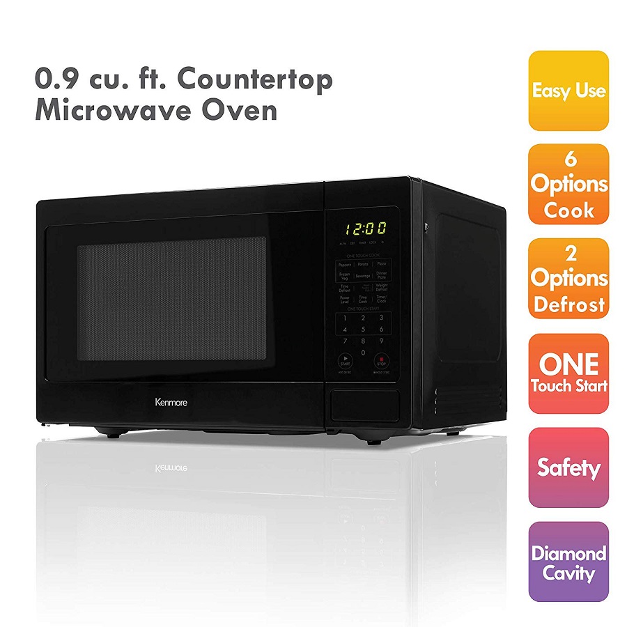 Kenmore 70929 0.9 cu. ft Small Compact 900 Watts 10 Power Settings, 12 Heating Presets, Removable Turntable, ADA Compliant Countertop Microwave, Black
