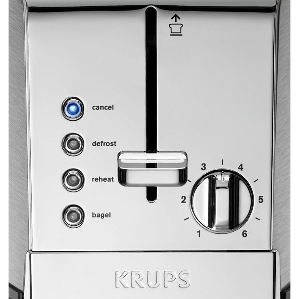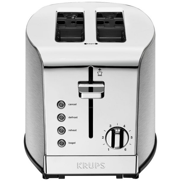 KRUPS, 2-Slice Toaster, Brushed and Chrome Stainless Steel KH732D502-slice toaster with extra-large, self-centering slots5 Functions: Cancel, Toasting, Defrost, Reheat and Bagel for the maximum versatility6-level adjustable browning controls to accommodate everyone’s tasteHigh Lift lever for easy removal of the toast and smaller itemsRemovable crumb tray for easy cleaningUnique design of brushed and chrome stainless steel with blue LED indicatorCord storage2-year worldwide warranty