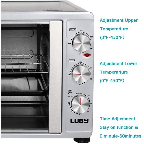 - Fast & even heating – Luby electric oven can be heated fast and even by the four heating Tubes. Perfect for broiling turkey, fish, baking pizzas, cookies, toasting bread and keeping food warm, just about everything!