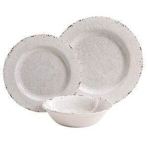 The Studio California Mauna 12 Piece Dinnerware Set is a festive light weight melamine. The set is durable enough for everyday use. Featuring a beautiful gray crackle look that is perfect for any occasion.This set is Dishwasher safe but hand wash recommendedSet includes: Four Dinner Plates 11x11x0.50 – 0.65lbs Four Salad Plates 9x9x0.50 – 0.35lbsFour Bowls 7.5×7.5×2 – 0.40lbsDo not microwaveItem Dimensions: 11.00″ x 11.00″ x 0.50″Item Weight: 6.20lbs This set is Dishwasher safe but hand wash recommended Set includes: Four Dinner Plates 11x11x0.50 – 0.65lbs Four Salad Plates 9x9x0.50 – 0.35lbs Four Bowls 7.5×7.5×2 – 0.40lbs Do not microwave Break resistant, chip resistant and scratch resistant