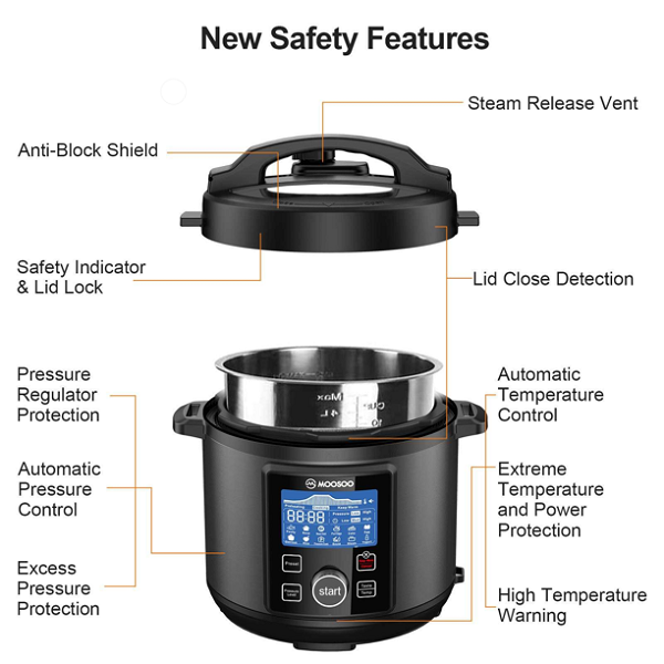 MOOSOO Electric Pressure Cooker with the Lagre 6 Quart Capacity, Cooking meals for your family or your guest becomes a breeze with the use of the appliance.