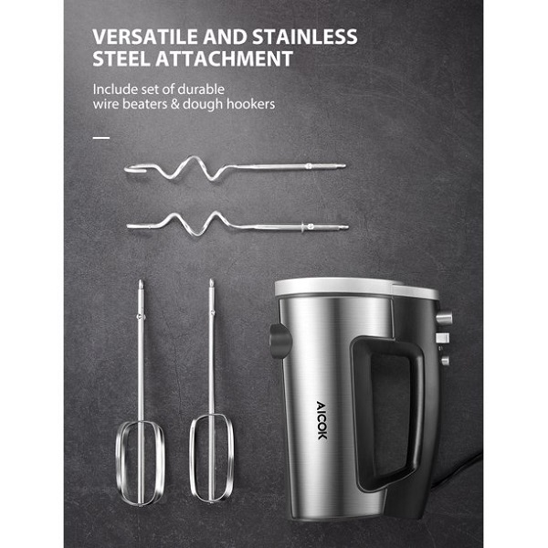 - 【MULTIFUNCTIONAL ATTACHMENTS】 – 2 dough hooks for making thick dough, 2 beaters for mixing various ingredients, all made by high-quality stainless steel, more resistant to corrosion than other attachments, perfect for whisking egg whites, creaming ingredients, and for light cake mixtures or batters.