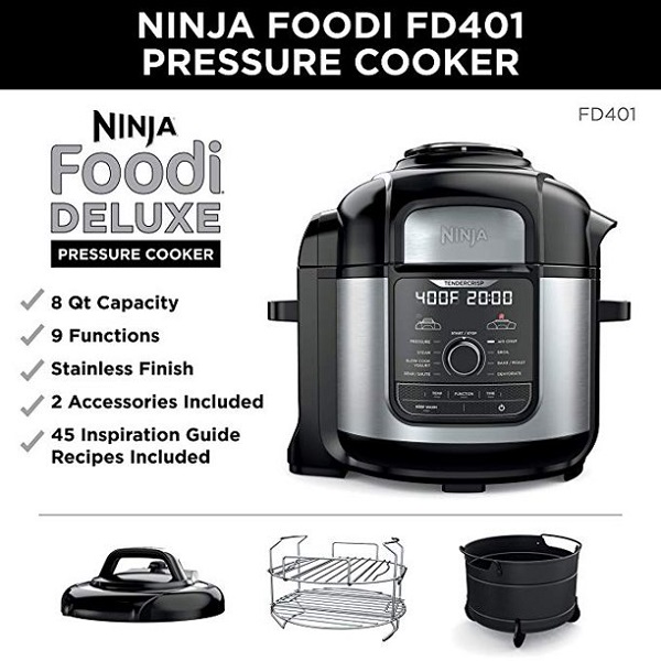 Product details Ninja® Foodi™ TenderCrisp 9-in-1 8-Quart Deluxe XL Pressure Cooker, Stainless Steel FD401 N19T