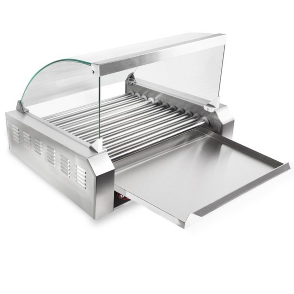 - Cooks 30 hotdogs at once on 11 stainless steel rollers
