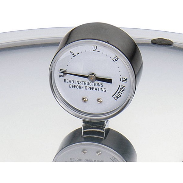 - Deluxe pressure dial gauge registers precise processing pressures, which is especially important in high altitude areas.