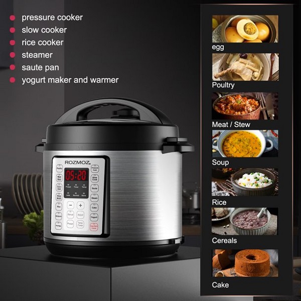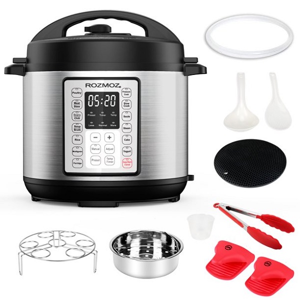 Product details Rozmoz 6.2 Quart Pressure Cooker 14-In-1 Electric Instant LCD Digital Pressure Pot, Stainless Steel R19S