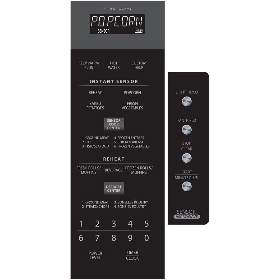 - Sharp’s convenient Auto-Touch Control Panel is located behind the oven door; it’s easy to reach and hidden from view.