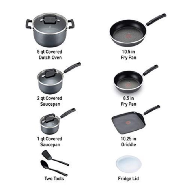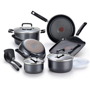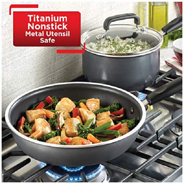 T-Fal B061SC64 GRY Signature Titanium Advancend Nonstick Pots & Pans, Advanced Titanium Nonstick, Gray – 12 Piece