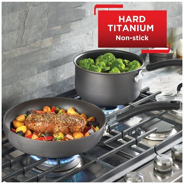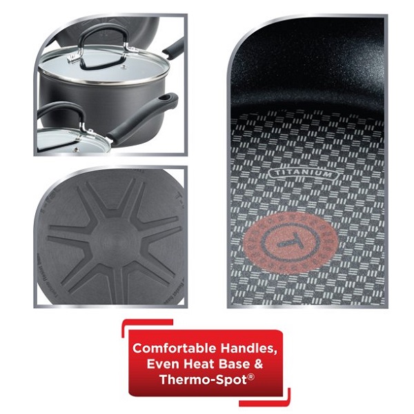 Product details T-fal Hard Anodized Cookware Set, Nonstick Pots and Pans T15W