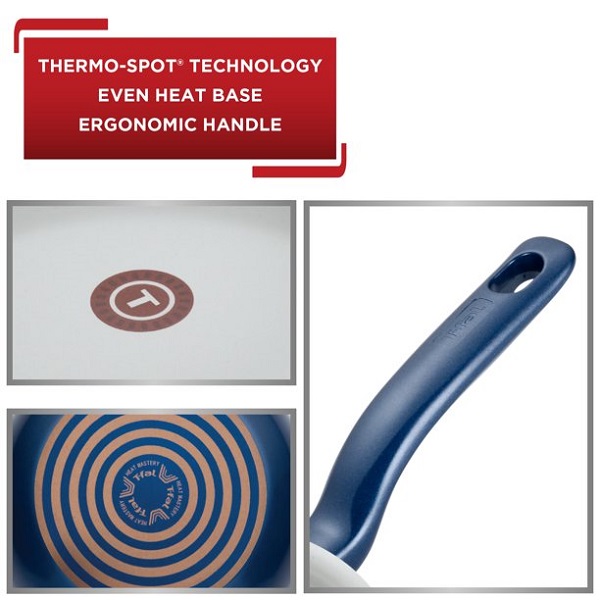 - THERMO-SPOT TECHNOLOGY: Unique heat indicator that turns solid red to show when pans are properly preheated to start cooking