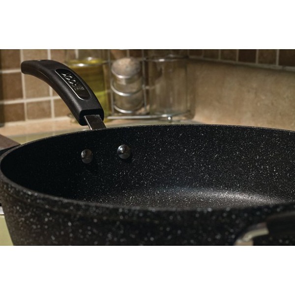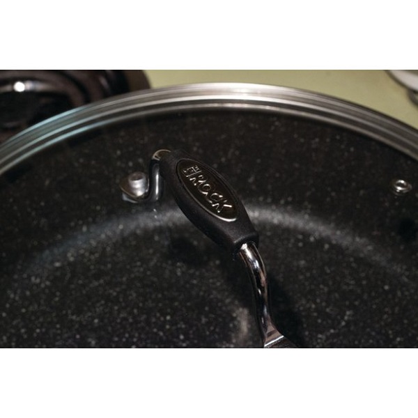 The Rock by Starfrit 11″ Deep-Fry Pan With Lid & Bakelite Handles is beautiful, durable, and nonstick cookware that is sure to become a staple in your kitchen. The Starfrit The Rock 11 in. Deep Fry Pan features a Bakelite handle and a patent-pending Rock.Tec manufacturing process for maximum durability and ease. It is easy to clean and ovenproof up to 350deg , even with the broiler on, making it ideal for cooking versatile, complex dishes. Whether you are completely new to the kitchen or a highly experienced cook, the Starfrit Fry Pan will quickly become a favorite kitchen tool.