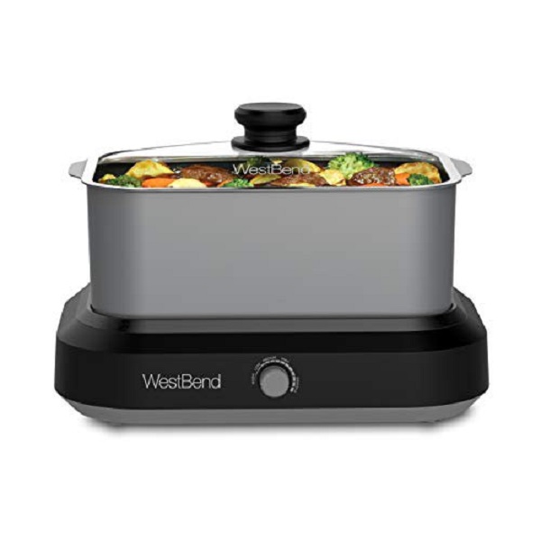 West Bend 87905 Versatility Slow Cooker Large Capacity Non-stick Dishwasher Safe Variable Temperature Control Includes Travel Lid & Thermal Carrying Case, 5-Quart, Silver